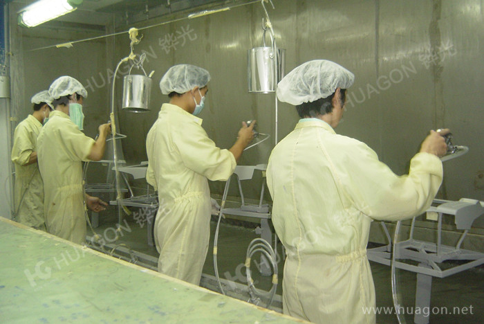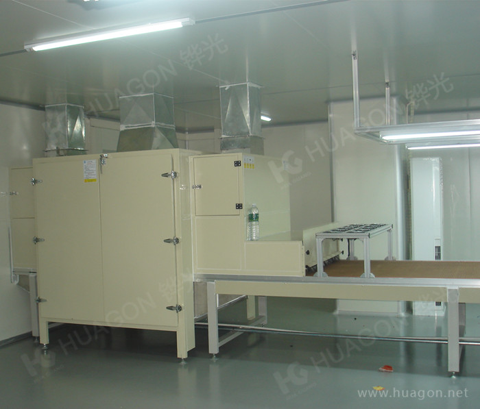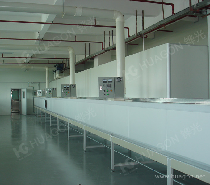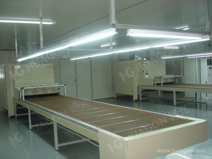 上料-手動靜電除塵-素材預(yù)熱-多任務(wù)站手動/自動噴涂-靜置-隧道式烘烤-UV光固化-冷卻-下料